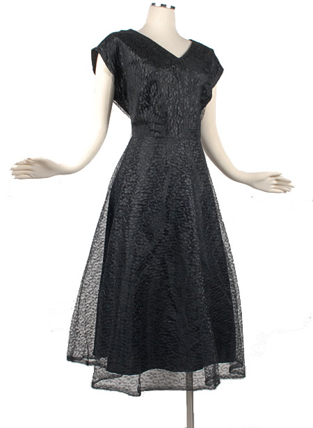 Classic black 1950s plus-size dress to flatter those curves. Black lace overlay, XXL ladies size.